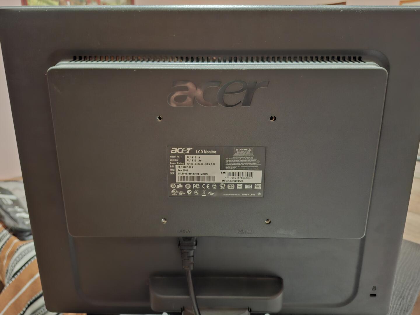 Witam sprzedam monitor Acer widoczny na zdjęciu cena 100 zł do małej negocjacji